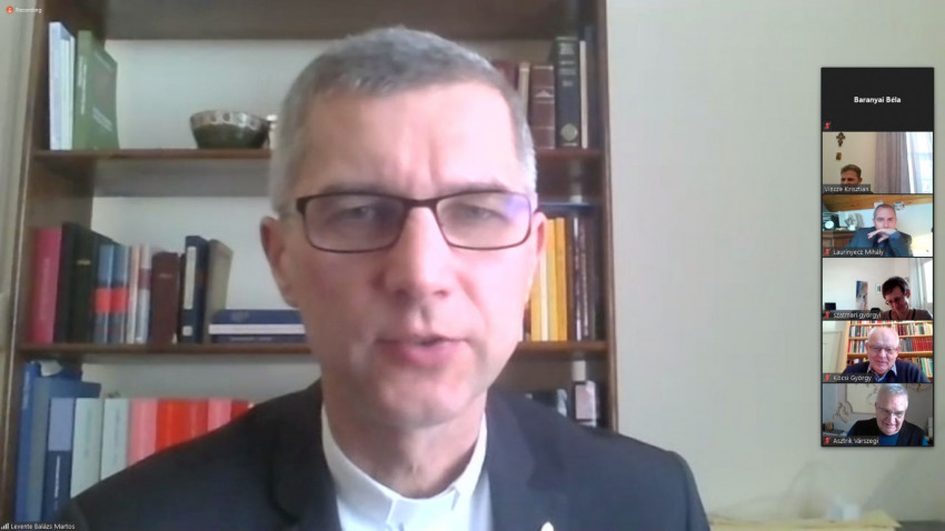 Simon Tamás László OSB a Római levél 8. fejezetében olvasható két zsoltárvers jelentéséről beszélt. Mint elmondta, az A év liturgiájában olvassuk a 8. fejezet 35–39. verseket, ám a 36. verset – „Amint meg van írva: Minket minden időben teérted irtanak, s vágójuhok módjára tartanak” (Zsolt 44,23) – kimarad, erről a szövegrészről a reformáció korának kommentátorai sem írtak. A Római levél nagy valószínűséggel Pál apostol műve. A zsoltárokat ebben a levelében idézi a legtöbbször, leginkább a 3. fejezetben. A 8. fejezet 38–39. versei a kutatók szerint az előző részek lezárásaként szerepelnek. A szakemberek egy része szerint a 36. vers a keresztény ember megpróbáltatásaira utal, mások szerint az idézett zsoltár a szenvedést nem tartja olyasminek, ami Isten népére jellemző, mert a szöveg mintegy számonkéri Istenen a megpróbáltatásokat.