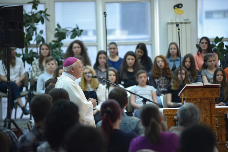 „Fontos a tanúságtétel keresztény életünkben” – mondta homíliájában Tamás József segédpüspök. Kiemelte, hogy a tanúságtétel sokféleképpen megmutatkozhat életünkben, ám leginkább hitünk és szeretetünk visszatükröződéseként nyilvánulhat meg. „Szép ez a zene és ez az ének, amivel a világ előtt kifejezitek elköteleződéseteket Jézus iránt. Kell-e ennél szebb tanúságtétel, hiszen ti Isten szavát és mosolyát tudjátok közvetíteni. A bennetek levő tűzzel és lelkesedéssel pedig másokra is hatással tudtok lenni.”