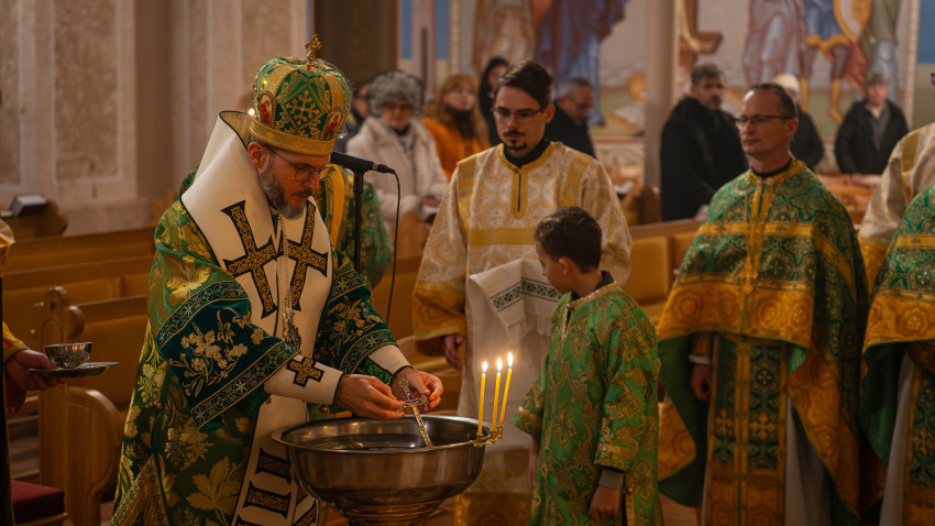 A Nagy alkonyati istentiszteletet, Nagy Szent Bazil Liturgiáját és az azt követő vízszentelést Szocska Ábel megyéspüspök vezette.
