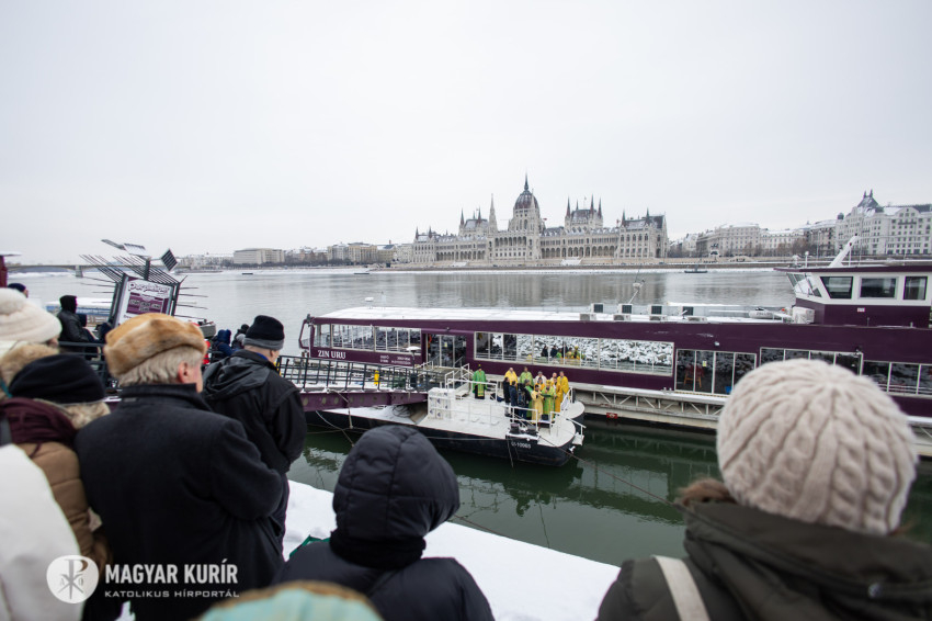 A Szent Liturgia után indult a menet énekkel vonulva a Dunához. Makláry Ákos, a Budai Görögkatolikus Egyházközség parókusa arra buzdított, tegyünk tanúságot arról, hogy velünk van Isten. A templom papsága és a hívek imádkozva haladtak végig a rakparton. „Szentelj meg engem és a vizeket, Üdvözítő” – hangzott fel újra és újra az emberek ajkán.