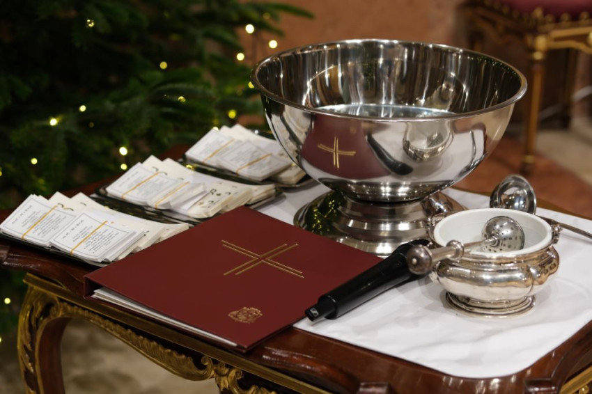 A szentmise a hagyományos vízszenteléssel kezdődött, amely már Jézus Krisztus megkeresztelkedését idézi fel.