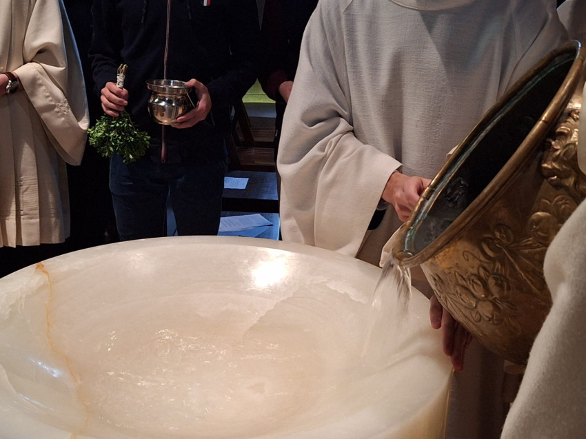 Keresztségünkre emlékezve Hortobágyi T. Cirill főapát – miután megszentelte a vizet – a hívekre és a szerzetesközösség tagjait is meghintette vele. Vízkereszt ünnepén arra kérte Istent, hogy „akárhová is hintik ezt a sóval vegyített vizet, távozzék onnan a gonosz, és Szentlelked jelenléte őrizzen meg minket mindenkor”.