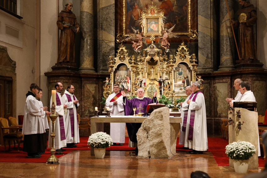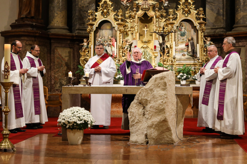 A szentmisén együtt emlékeztek és adtak hálát az elhunytak életéért a női és férfi szerzetesrendek képviselői, koncelebrált Berhidai Piusz ferences tartományfőnök, Ullmann Péter Ágoston premontrei és Jancsó Árpád jezsuita szerzetes.