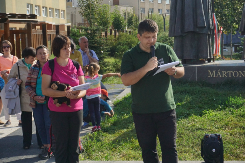 Több mint hatvan család előzetesen is jelentkezett a főegyházmegye felhívására, és sokan csatlakoztak hozzájuk Csíkszereda főterén szeptember 7-én. A Márton Áron püspök szobránál gyülekezőket Kertész Tibor köszöntötte. Útravalóként – Márton Áron hivatással kapcsolatos gondolatát idézve – a következőket fogalmazta meg: a keresztény házasság feladat; a súlyosabb feladatok közül való mind a családalapítás, mind a családfenntartás, egyúttal legnagyobb igazolása annak az eltéphetetlen kapocsnak, amellyel egy férfi és egy nő életét egymáshoz fűzi.