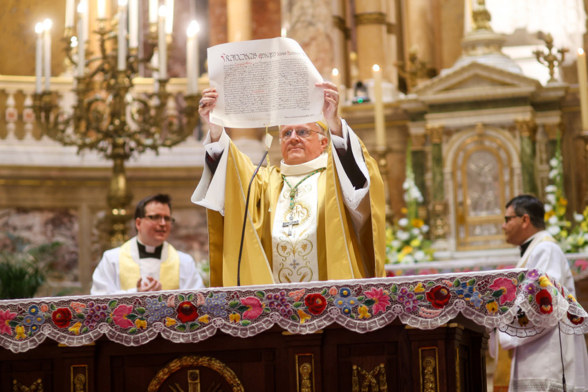 A kinevezésről szóló pápai bullát Michael Wallace Banach, Magyarország apostoli nunciusa olvasta fel, magyarul Mohos Gábor esztergom-budapesti segédpüspök, a bazilika plébánosa tolmácsolta a híveknek.