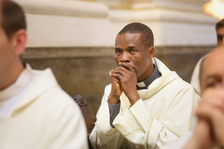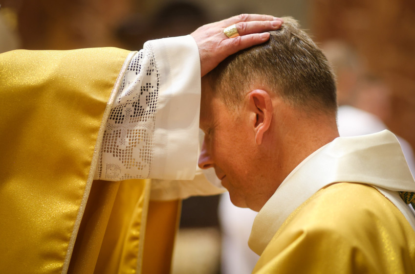 A homília után a jelölt ígérettételével folytatódott a szertartás. Ezt követően a jelenlévők elimádkozták a Mindenszentek litániáját, majd a kézrátétel és a felszentelő ima következett, melynek elimádkozása alatt az evangéliumos könyvet a szentelendő feje fölé helyezte Riesz Benedek, az Esztergom-Budapesti Főegyházmegye diakónusa és Lehoczki Gábor, a Kaposvári Egyházmegye állandó diakónusa.