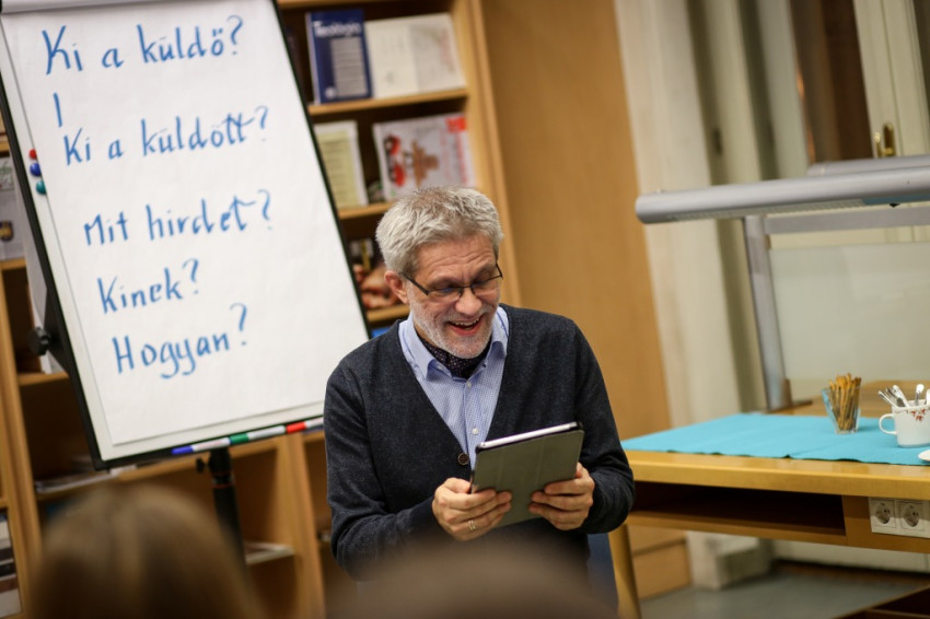 Bevezetőjében az előadó – a coaching módszertani eszközét használva – jelezte, hogy a folyamatért ő vállalja a felelősséget, de szeretné, ha a közönség is hozzáadna a tartalomhoz az előadás során. Egy áttekinthető vázlattal indította az este témáját. Az evangelizáció kapcsán felvázolt öt kérdést a táblára, majd ezek mentén haladt az interaktív előadás. Meséket olvasott fel, és azok kapcsán kérdezte a megjelentek személyes véleményét, hogy kinek-kinek mit jelent egy-egy történet az evangelizáció szempontjából. Maga az előadás tréninghez hasonló elemeket is tartalmazott, az érdeklődők kétfős csoportokban egymás felé fordulva osztották meg gondolataikat a felvetett témáról, a végén pedig arra kérte a diakónus őket, hogy egyetlen szóval foglalják össze, mit jelentett számukra az este.