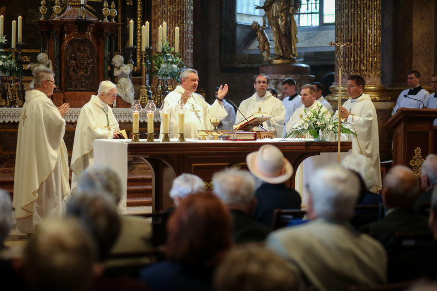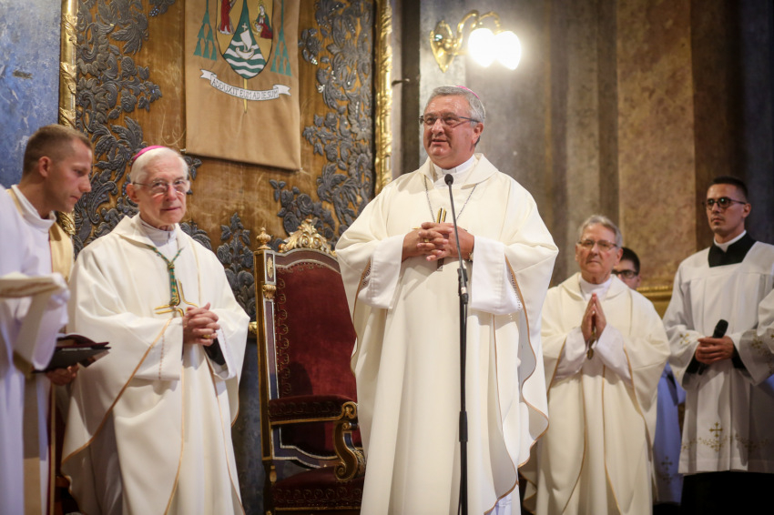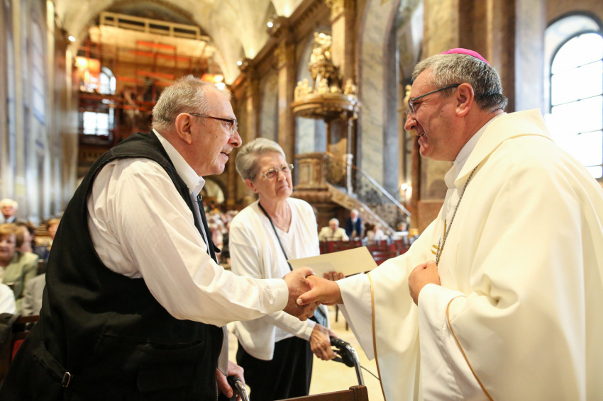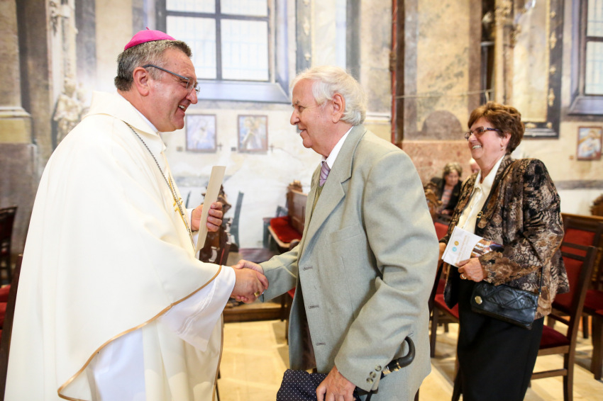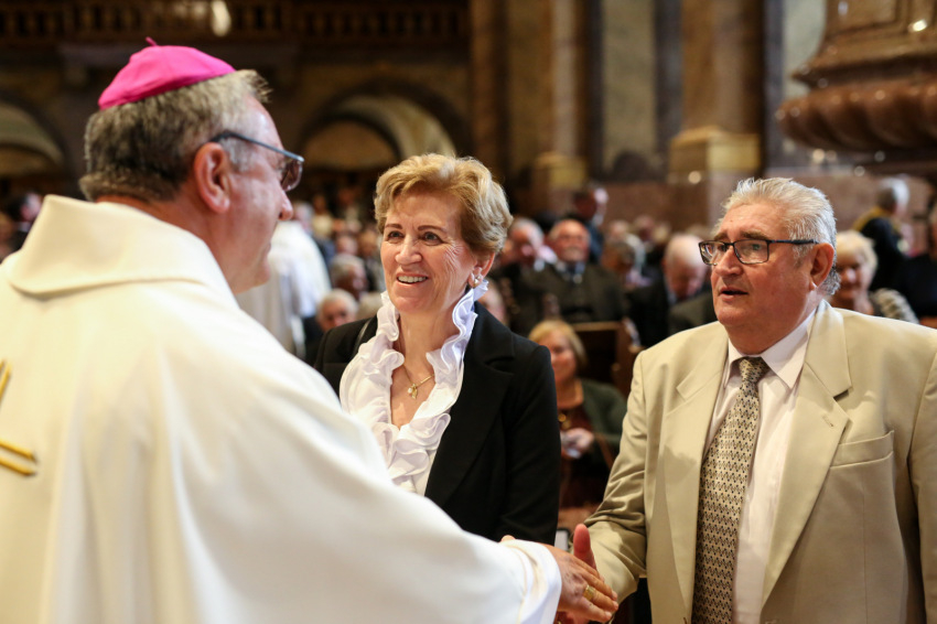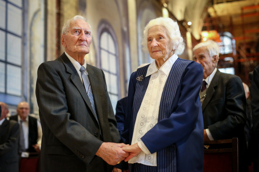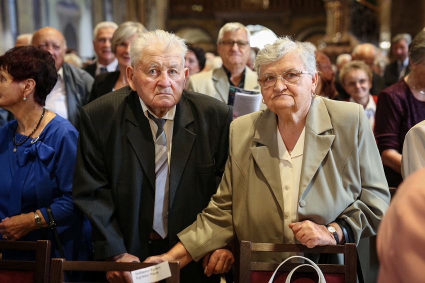 Veres András üdvözli a megjelenteket – köztük a díszvendéget, a nagymamája révén ehhez az egyházmegyéhez kötődő August Michel Blume apostoli nunciust – a mára hagyománnyá vált, idén harmadszor megrendezett eseményen, amelyre 287 jubiláló házaspár érkezett. Köztük egy olyan is, amelynek tagjai hetven éve keltek egybe. A két hatvanöt éves jubileumát ünneplő pár közül, akik az érkezésüket ígérték, végül csak az egyik tudott eljönni. Nem tudjuk, milyen akadály, nehézség miatt maradtak távol, de nekem erről minden emberi törékenysége-sérülékenysége jut eszembe. És hogy a sok-sok szoros életszövetség képviselői, akik ma itt megjelentek, a szó szoros értelmében a gondviselés élő bizonyítékai.