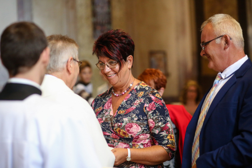 Kivételesen friss és derűs az a Judit és férje, Varga Zoltán is, akiket szelfizés közben zavarok meg a szomszédos kertben, ahol a püspök vendégül látja a jubilánsokat. „Mondhatnék nagy szavakat…” – kezdi Zoltán, mire Judit közbeszól: „Hát mondj! Most itt a lehetőség!” 35 éve házasok, az alkalmazkodás és a kitartás hívei, meg a heti miselátogatáséi, mert egy házasságban hétről hétre kell megújulni, és ez segít benne, mondják. Nem szabad megijedni a vitáktól, teszik még hozzá. De számomra minden szavuknál többet mondanak a gesztusaik, a jókedvük, meg az, hogy olyan jól kiegészítik egymást, szinte a másik szájából véve ki a szavakat, a párjuk gondolatát folytatva, kiegészítve.