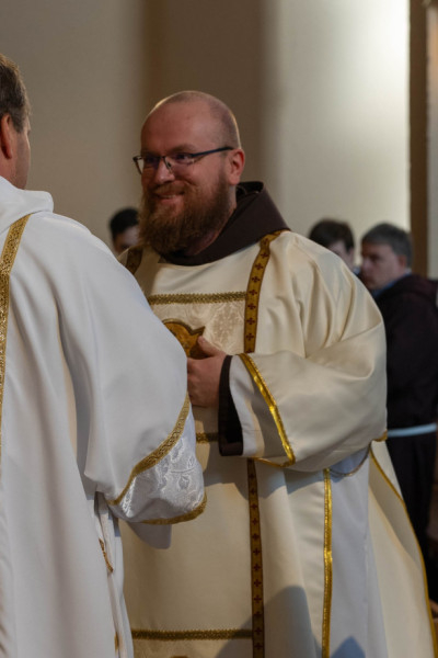 Majd Teofil testvért felöltöztették a diakónusok jellegzetes ruhájába, a dalmatikába. A stólát – vagyis a papi hatalom jelképét – viszont egyelőre még csak egyik vállán átvetve viselheti.