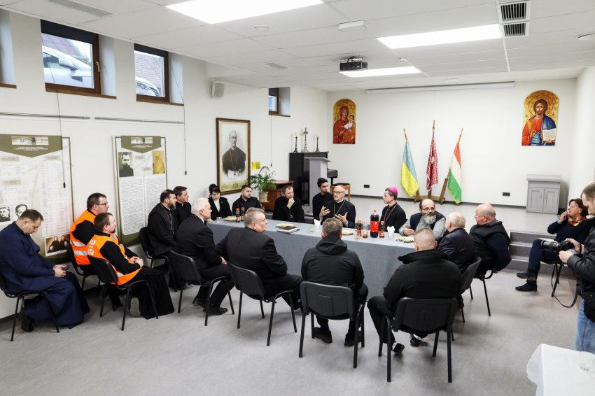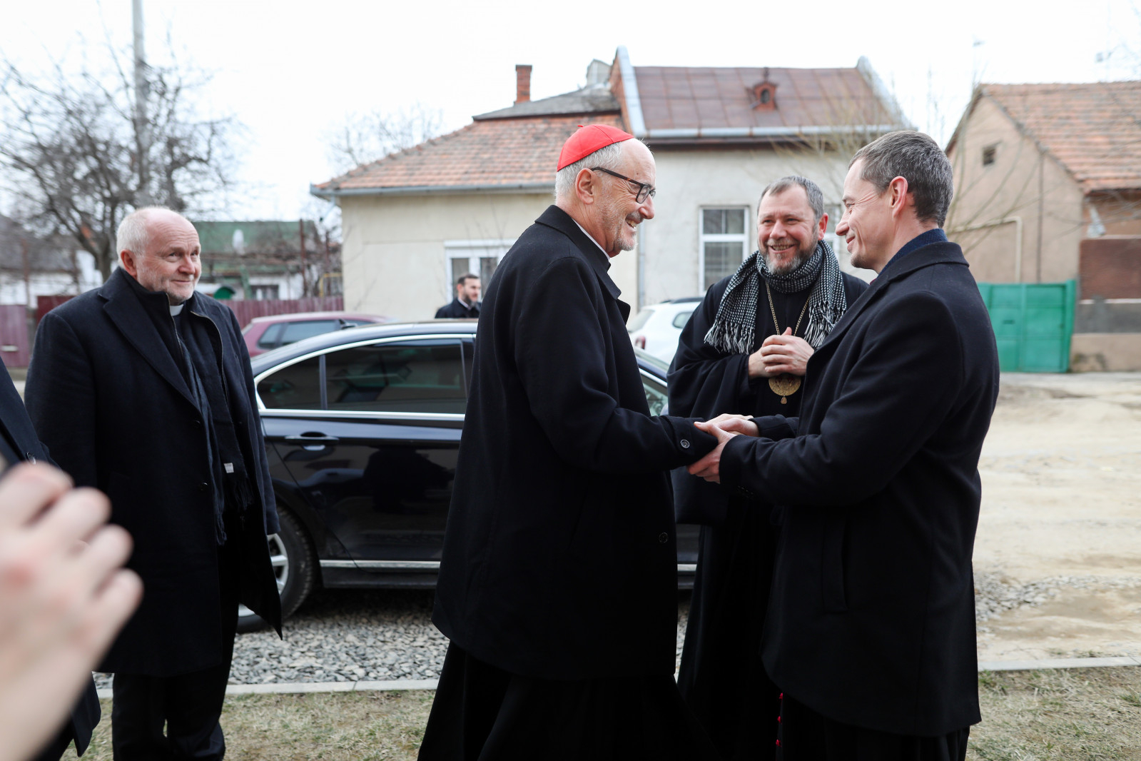 Luscsák Nílus, a Munkácsi Görögkatolikus Egyházmegye püspöke mint házigazda fogadta a magyarországi vendégeket és a felekezetek képviselőit. A határ menti városban a pápa követét fogadta Lucsok Miklós, a Munkácsi Római Katolikus Egyházmegye apostoli kormányzója és az egyházak helyi vezetői. A katolikus, a református és az evangéliumi egyházi felekezetek részvételével megtartott találkozón jelen volt Petro Zharkovsky, az Ukrajnai Karitász igazgatója és Viktor Mikita, a Kárpátaljai Megyei Katonai Közigazgatási Hivatal vezetője. A bíborost útjára elkísérte Szocska Ábel, a Nyíregyházi Egyházmegye megyéspüspöke, Tóth Tamás, a Magyar Katolikus Püspöki Konferencia (MKPK) titkára, Écsy Gábor a Katolikus Karitász igazgatója és Sajgó Szabolcs SJ, a Jezsuita Menekülszolgálat rendi képviselője.