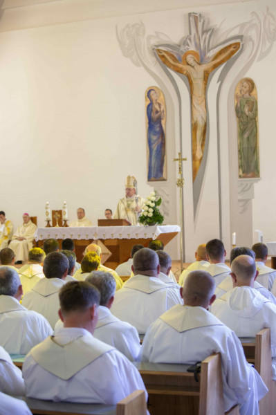 A három fiatal szívében Isten most nagy dolgokat visz végbe. Csak annyit tudunk kimondani, hogy: Uram, nem vagyok méltó… Isten csak annyit kér, hogy fogadjuk el kegyelmét, az ajándékait, legyünk ezekhez hűségesek, és működjünk együtt vele. Ha ragaszkodnánk méltatlanságunk tudatához, visszautasítanánk ezeket az ajándékokat, gátat szabnánk emberségünk kiteljesedésének – fejtette ki Palánki Ferenc.
