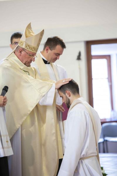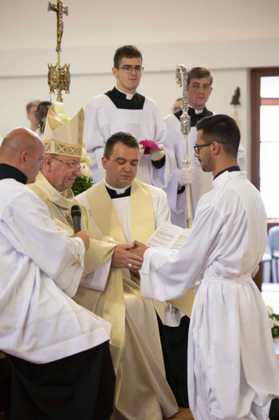 A szentelési szertartás előtt Krakomperger Zoltán általános helynök szólította a szentelendőket a diakónusi és az áldozópapi szolgálatra, tanúsítva a főpásztor előtt felkészültségüket és a szent szolgálatra való alkalmasságukat. A szeminárium elöljárósága hat éven keresztül formálta és segítette a jelölteket a lelki és szellemi előrehaladásban.