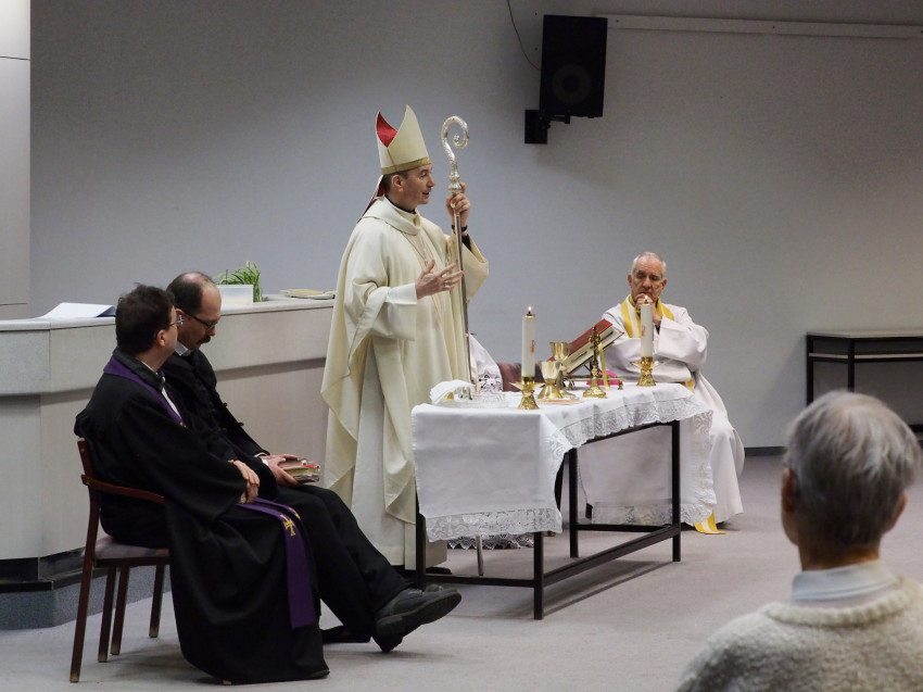 Minden nap, minden pillanatban van lehetőségünk arra, Isten mellet döntsünk gyengeségeink, korlátaink ellenére is, és ehhez Istenünk hathatós erejét kell kérnünk. A Bibliában is olvassuk: „Beteg valaki közületek? Hívassa az egyház papjait, imádkozzanak fölötte és kenjék meg olajjal az Úr nevében” (Jak 5,14–15). Hisszük, isteni erő jelenik meg abban, aki a szentséget kiszolgáltatja és abban, aki a szentséget kéri – zárta elmélkedését a főpásztor. A szentbeszéd után kiszolgáltatta a betegek szentségét a híveknek.