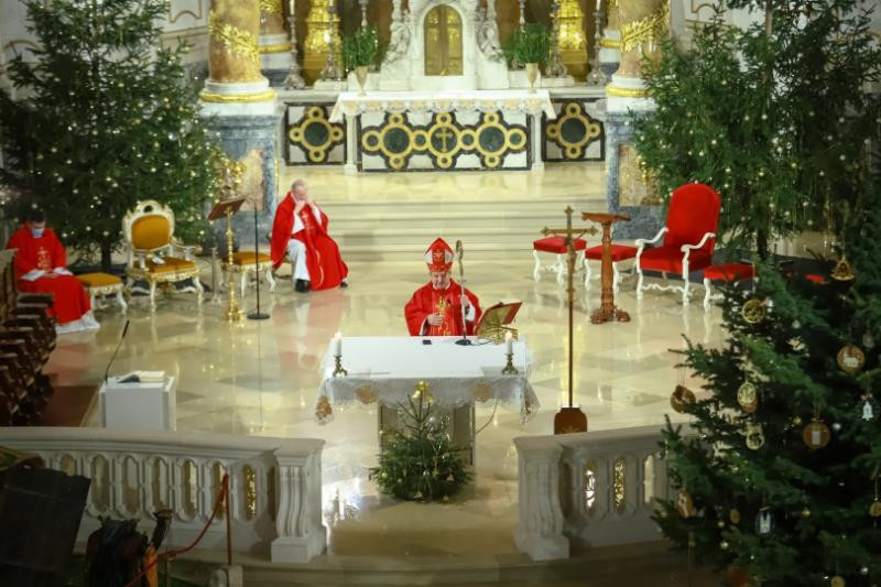A főpásztor szentbeszédében felidézte a vértanú szent képét: sok művészeti alkotás ábrázolja a fához kikötött, nyilakkal megsebesített fiatal férfit; majd emlékeztetett, hogy a járványok végén, hálából állított Szentháromság-szobrok szentjei között is ott van Szent Sebestyén, hiszen a segítő szentek között tiszteljük. Élete nem legenda, hanem valóság, a Diocletianus-féle nagy keresztényüldözés idején szenvedett vértanúhalált. Bár akkoriban már úgy tűnt, hogy konszolidálódik a keresztények helyzete a Római Birodalomban, Sebestyén keresztényként lehetett a császári hadsereg tisztje, de az üldözés aztán újrakezdődött. Sebestyént kétszer is megkínozták, de túlélte a nyilazást is, és felépült, ezután bottal agyonverték.