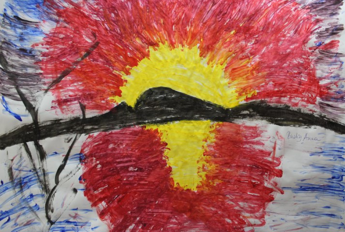 Készítsünk festményeket! – szólt a javaslat, és jött hozzá a kifogás is, hogy az már nem fog menni. Aztán előkerültek a rajzlapok, egy hosszú asztal mellett együtt láttak munkához az alkotójelöltek. A témát közösen választották ki; ha nem alakult, akkor csak egy vonalat húztak, majd a mentálhigiénés csapat tagjai pöttyöket tettek a papírlapra, az idős emberek pedig egy ecsettel teremtettek egységet a pöttyök között, vagy éppen ők kezdtek pecsételésbe festékbe mártott fültisztítókkal. Így lettek a színes pöttyökből felhők és naplemente, a pecsétekből virágzó fa, nyári álom. Ha valahol paca keletkezett, az is a kép javára vált, így lett egy fán például az új életről regélő madárfészek. Ahogy az alkotási hév növekedett, úgy születtek az ötletek is, színesedtek a papírra vetett érzések.