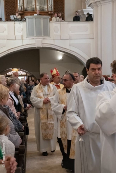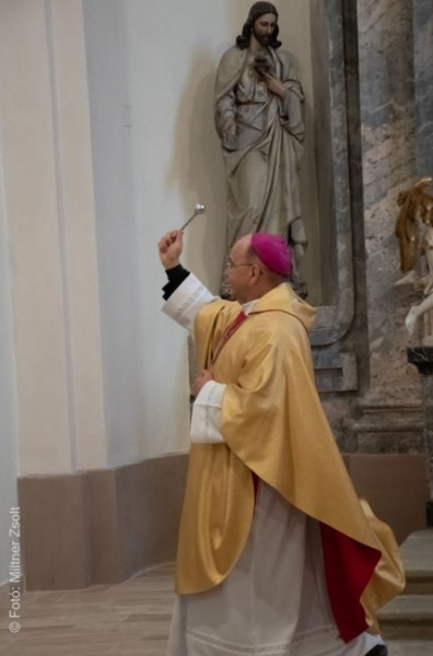 „Egyházunk is úton van, amelynek ma egy fontos állomásához értünk. Ha Krisztus velünk van, akkor igazi »szün-hodosz«, azaz közös úton járás valósul meg, amelyben mindenki – püspök, pap, diakónus, hitoktató – megtalálja a helyét és együtt építhetik a közösséget és vele az Egyházat – hangsúlyozta a főpásztor utalva a Ferenc pápa által elindított szinodális útra. – A vándorló nép életében mindig is fontos hely volt a templom, ahol ünnepélyes módon találkozhattak Istennel. Nyissuk ki a szívünket, hogy valóban tudjunk találkozni Istennel a Szentírásban és az Eucharisztiában, és mi is lángoló szívű tanítványok lehessünk, mint az emmauszi úton az újra Jeruzsálem felé haladó tanítványok.”