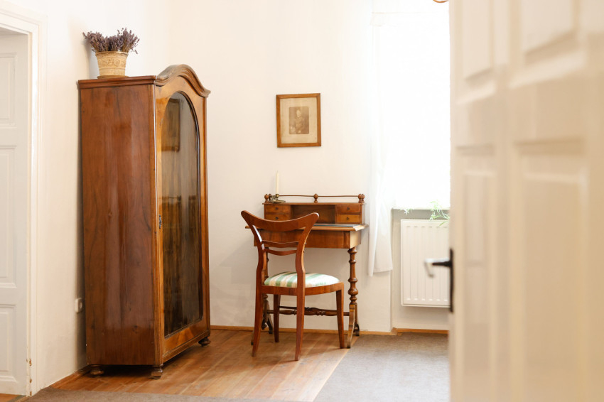 A diákszobában találjuk a legrégebbi bútordarabokat, amelyek a nagymama fiatalkorát idézik, köztük is a négyfiókos, fekete nyárfa borítású sublót. Mellette áll Babits Mihály gyermekkori íróasztala, ahová első írásait rejtette.