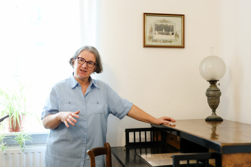 Az irodalomtörténész felhívja a figyelmünket a nagymama íróasztalán heverő levélre. A Babits család akkor már Pécsett élt, és ő vigyázott a két unokájára. Azt írja a lányának, Aurórának, Babits édesanyjának, hogy éppen Pécsre látogatott a király, és bár zuhogott az eső, egy pillanatra kihajolt a hintóból, így a gyerekek láthatták Ferenc Józsefet. A család egyik kedves emléktárgya Ferenc József és Erzsébet királynő üvegszobra. Nagyon szép üvegtárgyak, ezüstkanalak, imakönyv, fotóalbum, Poesie feliratú kötet, ami emlékkönyvként funkcionált, illetve az édesanyja ebbe vagy az ehhez hasonló kötetekbe írta bele a kedvenc versidézeteit. Babits Mihály fiatalkori verse, az Örökségem szinte leltárszerűen sorolja fel ezeket a tárgyakat.