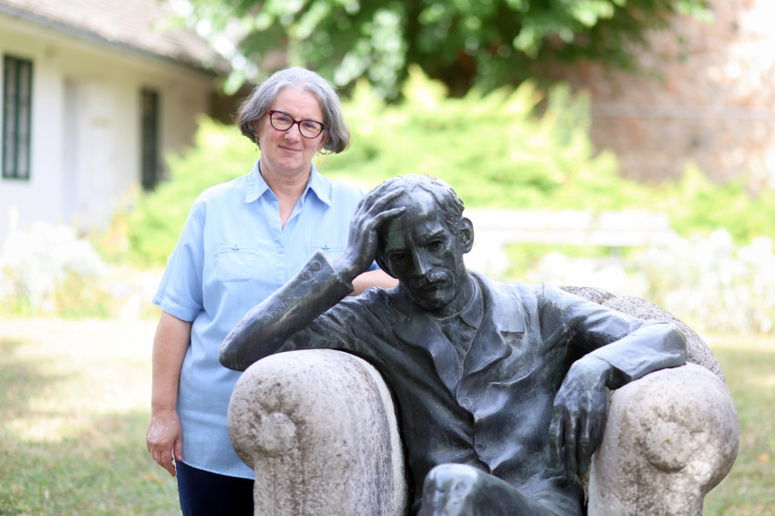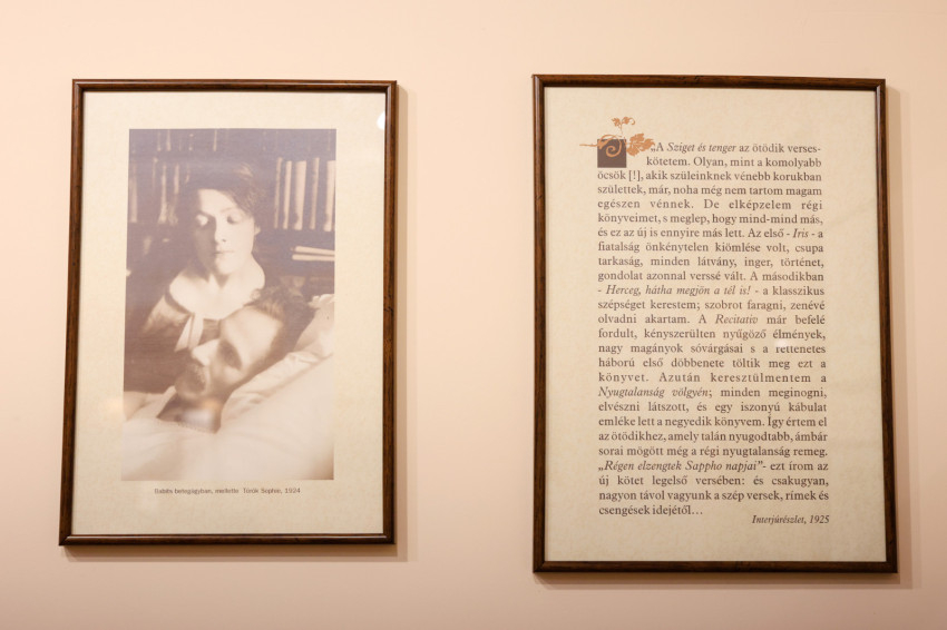 Az első, amit megpillantunk, Farkas Pálnak az 1981-ben Babits Mihályról készített ülőszobra emlékház kertjében. A múzeumban Lovas Csilla irodalomtörténész, főmuzeológus vezet végig bennünket.