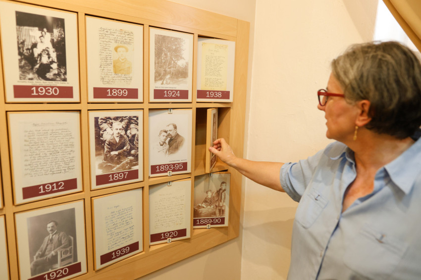 Az egyik vitrinben névjegyek és rövid üzenetek láthatók a család barátaitól. Lovas Csilla szerint ilyenek voltak a korabeli sms-ek.