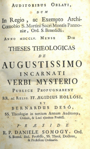 A Josephus Flavius művéhez kötött párlapos nyomtatvány ajánlása Waldstein grófjának szól, aki a kiadást finanszírozta. A két hallgató pedig – akiknek tiszteletére megjelentették a libelli gradualest – Deső Bernát és Hollósi Egyed bencés szerzetesek voltak, akik Somogyi Dániel pannonhalmi főapát előtt tették le a vizsgájukat. A kötetből egyébként van egy másik példány is a könyvtár állományában, annak kötése ugyan díszesebb, de nem található benne bencés vonatkozású bejegyzés, illetve kézírásos vagy pecsétforma possessor.