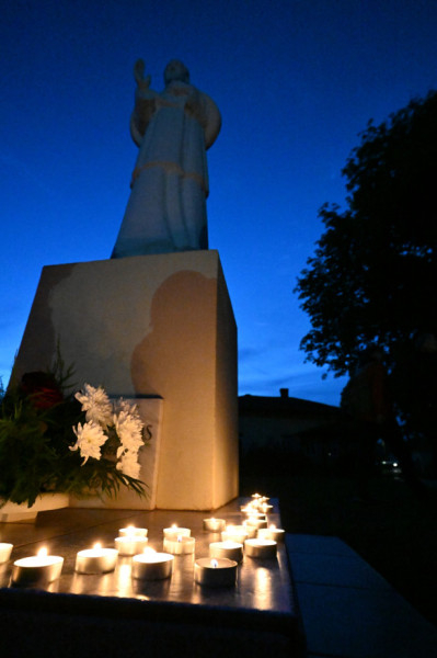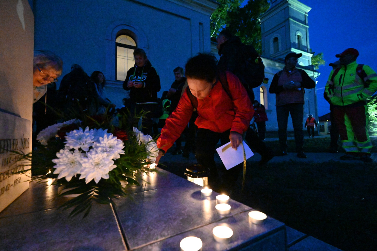 (…) Még sötét volt, amikor a kálmándi plébániatemplom udvara megtelt lelkes zarándokokkal. Ezt a sötétséget Bíró Norbert plébános köszöntő szavai, Tatár János Zoltán krasznabélteki plébános indító gondolatai után mécsesekkel törtük meg. Mindenkinek az egyéni igenje egy közös igenné vált, amit kifejeztünk azzal, hogy saját világító mécseseinket Scheffler János püspök szobrához helyeztük, és így csodás megvilágítást kapott a szobor. Ezután szalagjainkat, melyekre szándékainkat írtuk fel, a zarándokkeresztre kötöttük, felajánlván az utat ezekre a szándékokra.