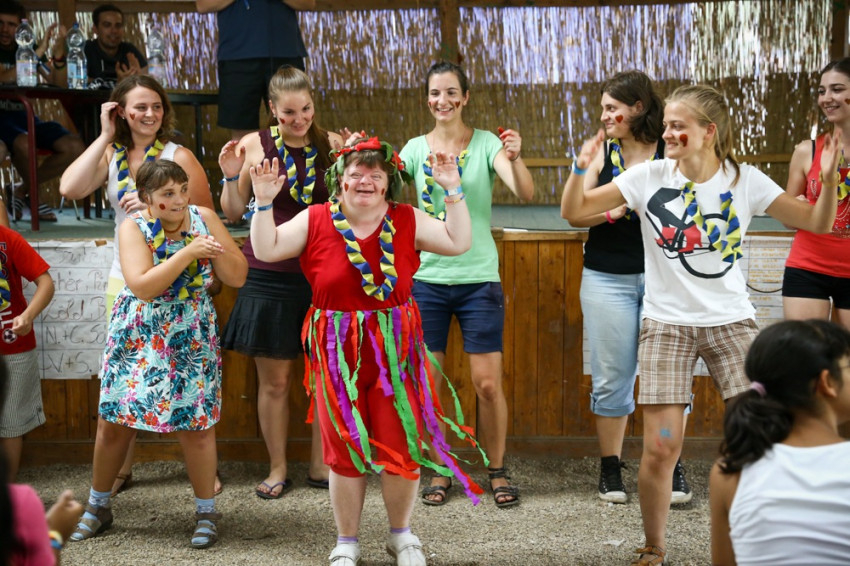 – A tábor első napja mindig a segítőknek szól. Ez egy bemelegítő nap, érzékenyítő játékokkal próbáljuk bevonni őket ebbe a munkába. Megpróbáljuk megéreztetni, mit jelent siketként, vakként élni. Meghívjuk a szakma képviselőit, akik előadást tartanak például a Down-szindrómás, autista gyerekek jellegzetes viselkedési mintáiról vagy a kerekes székesek gondozásáról. Mindig van az elsősegélynyújtás alapjait ismertető előadás is, ennek során mondjuk el, mi a teendő epilepsziás roham esetén, mert az szinte minden táborban előfordul. A segítők előre megkapják az anamnéziseket, ez részben megismerteti őket a gyerekekkel. Nem lehet mindenre előre felkészülni, tudni kell rugalmasan kezelni a helyzeteket. Esténként van segítői megbeszélés, melyen mindenki ott van, ezt a csoportvezetői megbeszélés követi.