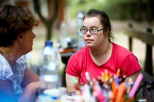 – Tíz csoport van. A „régi motorosok” kapják a nehezebb eseteket, hozzájuk próbálunk újabb résztvevőket beszoktatni. Egy csoportban huszonhárom fő van: három csoportvezető, tíz táborozó gyerek és tíz önkéntes. A csoportvezetők ügyesen beosztják, ki kivel, hogyan foglalkozik. Vannak, akik huszonnégy órás felügyeletet igényelnek, vannak, akik egész nap elbóklásznak egyedül, vagy leülnek rajzolni. Jobbára közép- és enyhe fokú sérültek a táborozóink, de vannak súlyosabbak is.