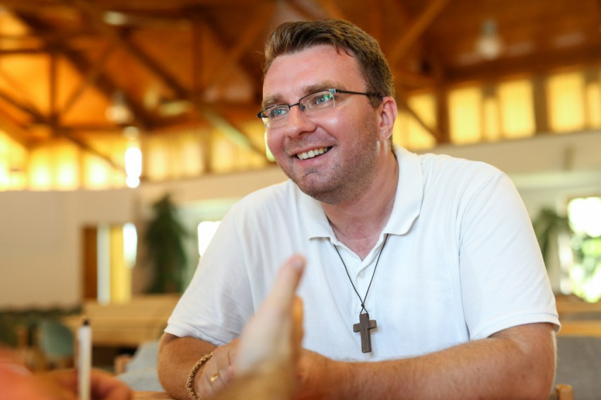 Takács Gábor, a házigazda fogad, akit először a lelkigyakorlat elnevezéséről kérdezek. Azért lett Betánia-napok a neve, mert Betánia volt az a város, ahol Jézus a barátainál, Máriánál, Mártánál és Lázárnál megpihent. Gábor vállalta a szervezést, a technikai feltételek biztosítását, mivel ő az egyike a közösség Kecskeméten élő öt tagjának. Noha sok teendője van itt, az alapérzése mégis a béke, az otthonosság, mert a közösség lelkiségének megfelelően azt élheti meg, hogy együtt állhatnak az Isten elé. Közel nyolcvanan érkeztek az ország minden tájáról, Nyíregyházától Sopronig. Tegnap a közösség külső tagjai közül hárman megújították elköteleződésüket.
