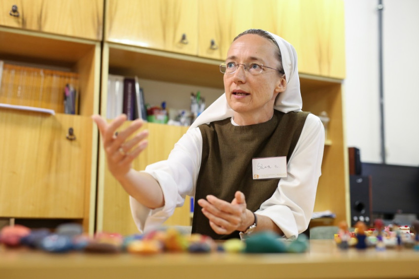 Kezdődnek a fakultációk, igyekszünk több helyre is benézni. Sára nővér „kreatív meghallgatást” hirdetett, „megküzdési mesét” ír a hozzá fordulókkal, és ahogyan az asztal mögött ülve színes kavicsok, apró figurák és legóházikók között várja a jelentkezőket, mintha egy meseszereplő lenne. Lelkigondozó, ezt a módszert tízalkalmas monodrámaképzésen sajtította el. Nem analizál, csak kísér, mondja: ahhoz próbál hozzásegíteni, hogy én, aki leülök mellé, ki tudjam fejezni, ami bennem van, hogy közelebb kerüljek a saját megoldásomhoz, hogy új nézőpontot találjak.
