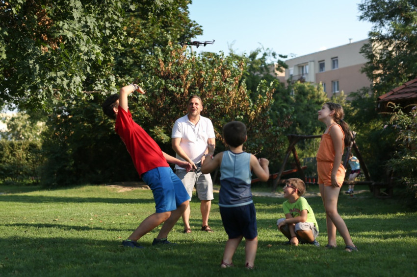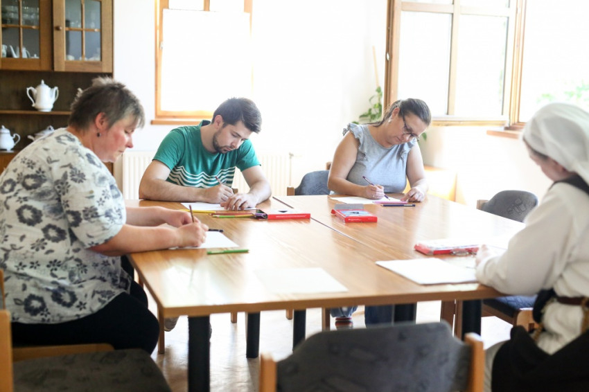 Egy másik helyiségben Szeidel Péter bibliodráma-foglalkozása kezdődik, kettővel odébb mindenki elmélyülten rajzol. A kertben a résztvevők gyermekei játszanak; körülbelül huszonötüknek kínálnak programokat, biztosítanak játékokat a szervezők. Önfeledt, pillangós péntek délután.
