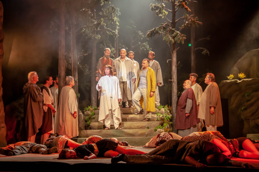 A békéscsabai előadásokon a Mester figuráját kettős szereposztásban Varga Miklós, illetve Bedőcs Imre játssza. Varga Miklós a színházi portálnak nyilatkozva szerepéről kifejtette: „Függetlenül attól, hogy ma milyen társadalomban élünk, azok a közösségek maradtak meg, amelyek erkölcsi normái között a szeretet az első helyen szerepelt. Ez a történelem egyik legnagyobb tanulsága.” A Vezért Katkó Ferenc, az Árulót Csomós Lajos, a Lányt Csonka Dóra játssza.