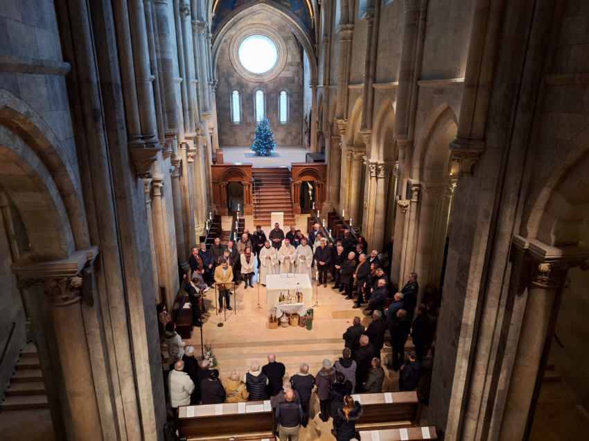 „Milyen érdekes, hogy Jézus lakomához hasonlította a mennyek országát. Egy lakomához, ahol nem hiányzik a bor sem! Talán ez azt jelenti számunkra, hogy a kulturáltan és igényesen ápolt hagyományok – közöttük a borkultúra is – nem pusztán ínyencséget és szórakozást jelentenek, hanem a közösség megteremtésének, a szeretet kifejezésének, emberi mélyülésünknek, emberségben való gazdagodásunknak is méltó alkalmai lehetnek. Ezzel a lelkülettel vagyunk most itt, ezzel a lelkülettel imádkozunk és kérjük az áldást a Föld termésére és kezünk munkájának gyümölcsére, az újborra” – zárta beszédét a főapát, majd minden jelenlévőt az oltár köré hívott, és együtt kérték Isten áldását az oltár elé helyezett borokra.