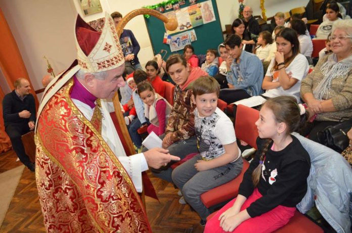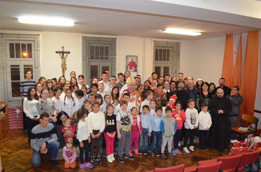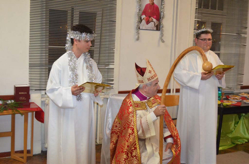 Családias volt a hangulat, kicsik és nagyok egyaránt jól érezték magukat. Majd betoppant a várva várt Mikulás, akit Pál József Csaba temesvári megyéspüspök személyesített meg. A főpásztor elmesélte a gyermekeknek Szent Miklós történetét, azt követően pedig szétosztotta a fiatalok által készített ajándékcsomagokat.