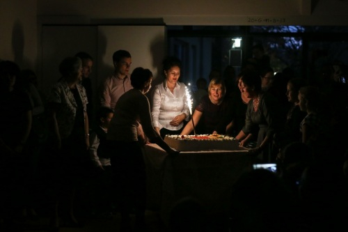 Pár perccel később elalszik a villany, néhányan sikítozni kezdenek, de mielőtt alaposabban megijedhetnénk, már tolják is be a hatalmas tortát. Akkora, hogy már a kezdet kezdetén világos: nem fogunk bírni vele. Amikor a repetasorban az osztókhoz érek, egykilós darabot akarnak a tányéromba tenni, rimánkodásomra azonban végül kegyesen harmadolják.