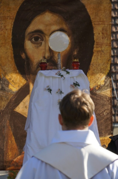 Gondolatmenete végén Nagy Bálint feladatot is adott a résztvevőknek: ki-ki idézze fel magában, hol érezte az Urat magához közel; hol, miben volt élet benne; hova szeretné most visszavezetni az Úr. E gondolatokra építve, vezetett imádsággal kezdődött el a szentségimádás. Elhangzott: „Az Úr látja a tömeget, és megesik rajtuk a szíve... Engedjük, hogy velünk történjen! A hullámok valósak. Erősebbek, mint te... A vihar elül.... Az Úr bevonul...”