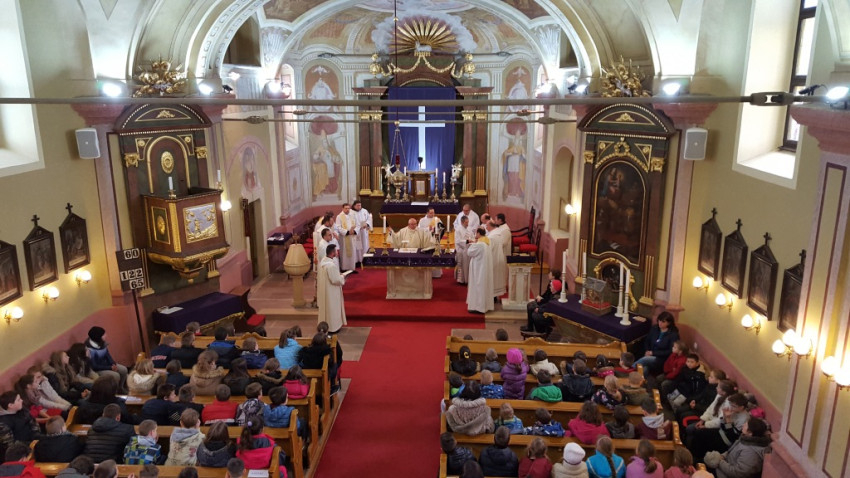 Az idei nagyböjti készület mottója így hangzott: „Irgalomban, békében és szeretetben bőven legyen részetek!” Az irgalom utal a kaposvári püspök jelmondatára, illetve a nagyböjti időre. „Ezt az alkalmat azért is tartom ily módon fontosnak, mert egyházmegyénknek új főpásztora lett, és ilyen minőségben még nem tett látogatást ezen a plébánián” – mondta Sifter Gergely plébános. Hozzátette: Varga László püspök örömmel fogadta a meghívást, szentmisét mutatott be, a gyerekekhez és a pedagógusokhoz is szólva.