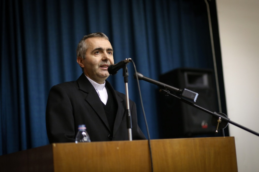 A következő kérdés a menekültek helyzete és a népvándorlás megítélésére vonatkozik. Senki nem maga választja meg, hova születik, csak Jézus tehetett így, és ő az istállót választotta – reagál a püspök. – Ezzel példát mutatott, hogy aki jobb helyre született, segítsen annak, aki rosszabbra. Ahol van ivóvíz, nincs háború, és viszonylagos jólétben élnek az emberek, nem lehet azt mondani a menekülőknek, hogy „maradjatok otthon”. Csak az lehet a kérdés, hogyan segítsünk. A miniszterelnök azt nyilatkozta: azért kell a kerítés, hogy ne az ablakon, hanem az ajtón jöjjenek be hozzánk a menekülők. „Kérdezem: aki az ajtón jön, jönne be, annak segítünk? – tekint a püspök hallgatóságára, majd így folytatja: – Ezt az állapotot sokáig nem lehet fenntartani.” Az egyház életét a tanítás, az imádság és a szeretetgyakorlás hármas egységének kell jellemeznie. A keresztény élet valójában akkor kezdődik, amikor a templomból kilépünk – teszi hozzá.