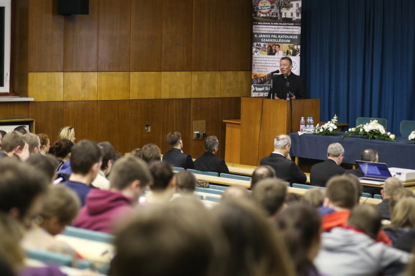 Két órával később Beer Miklós váci püspököt színültig megtelt terem fogadja a Martineum Felnőttképző Akadémián. Nyolc előtt aztán már az egyetemen kell majd lennie, mert ő fogja mondani a találkozó nyitó elmélkedését. A város láthatóan nagyon készült erre a napra.