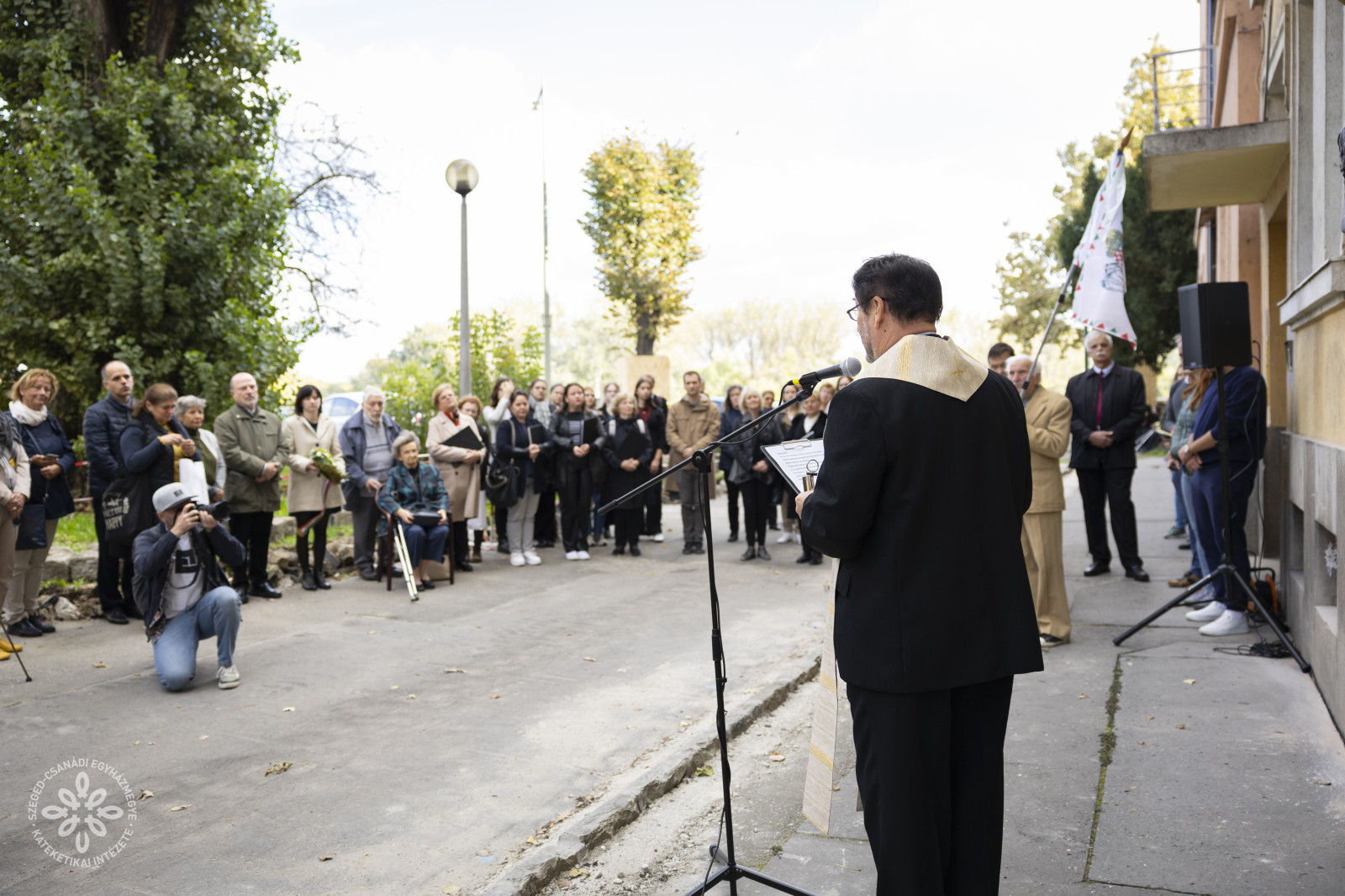 Az emléktáblánál koszorút helyeztek el a Szeged-Csanádi Egyházmegye, a Magyar Művészeti Akadémia Szegedi Regionális Munkacsoportja, valamint Szeged Megyei Jogú Város Önkormányzata és a Bálint Sándor Művelődési Ház képviseletében.