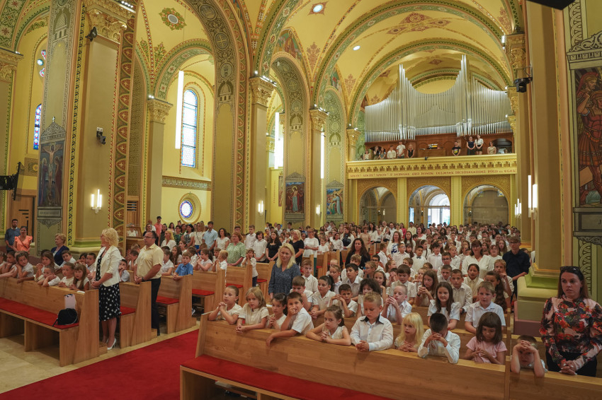 „Egy fontos javaslatom van a nyárra: ha már nem kell iskolába járnod, tanulnod, akkor a pihenőidődet fordítsd arra, hogy növekedj a szeretetben. Mert csak azok boldogok, akik szeretnek és akiket szeretnek. S kár lenne a nyarat szomorúsággal, unatkozással tölteni – fogalmazott szentbeszédében Varga László püspök. – Mi lenne, ha a legkisebbtől a legnagyobbig elhatároznátok, hogy a nyaralás alatt növekedni akartok most nem a tudásban, tanulmányokban, hanem a legfontosabban: a szeretetben?