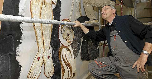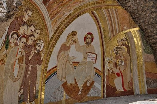 Most végre teljesült a közös kívánság: elkészült a Mátraverebély-Szentkúti Nemzeti Kegyhely oltárát díszítő mozaikkompozíció, amelyet a szlovén jezsuita művész az elmúlt napokban állított fel munkatársaival együtt.