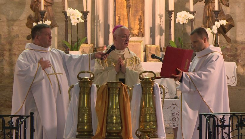 A szentbeszéd után a jelenlévő lelkipásztorok megújították Ternyák Csaba egri érsek előtt papi ígéreteiket. Ezt követte az olajszentelés szertartása.