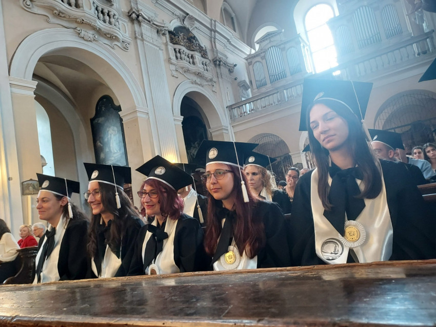 A szentmise után kezdődött a ballagási ünnepség, majd átadták az alapképzés elvégzését igazoló diplomákat. A beszédek sorát Vik János dékán nyitotta, aki többek között az egyetemi képzés értelemnyitogató céljáról, hatásáról szólt.