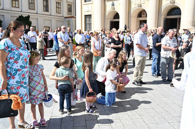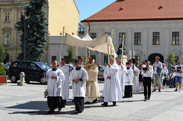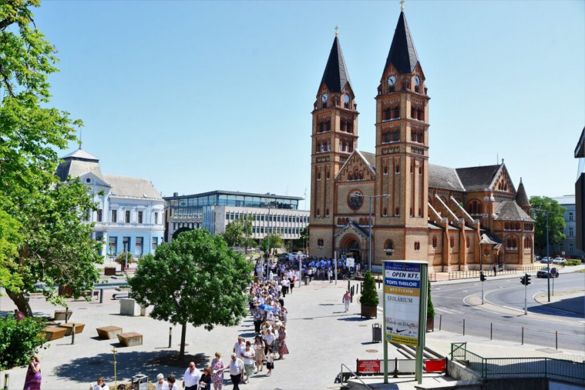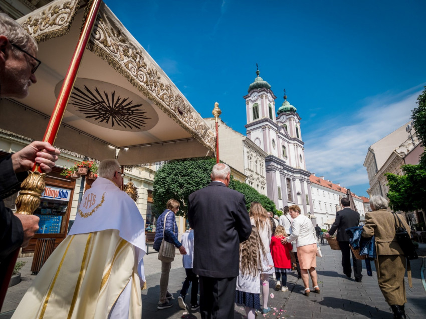 Úrnapja délelőttjén a szombathelyi székesegyházban gyűltek össze a városi plébániák hívei, hogy Székely János megyéspüspökkel együtt ünnepeljék Krisztus Szent Testét és Vérét. A szentmise végén körmenetben vitték az Oltáriszentséget a templomban és a téren felállított és feldíszített oltárokhoz, sátrakhoz.