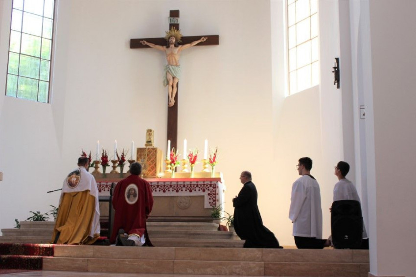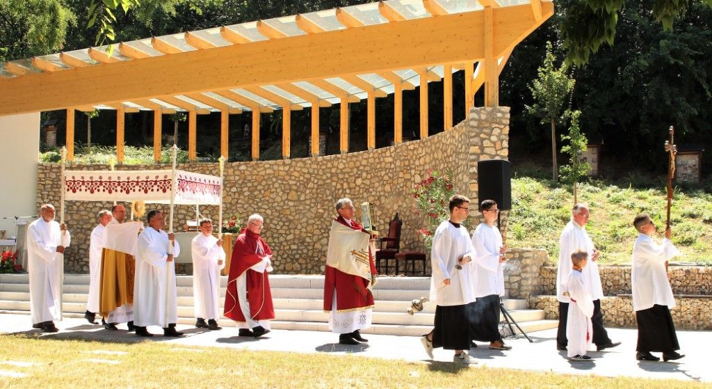 Nyúl Viktor pasztorális helynök a búcsúi szentmise homíliájában hangsúlyozta: ez a nap arra hív, hogy feltekintsünk a keresztre, és szemléljük az értünk vérző Jézust. Szent II. János Pál pápa szavait idézve arra biztatott, hogy vizsgáljuk Jézust, mert akit és amit szemlélünk, azzá formálódik a gondolkodásmódunk.