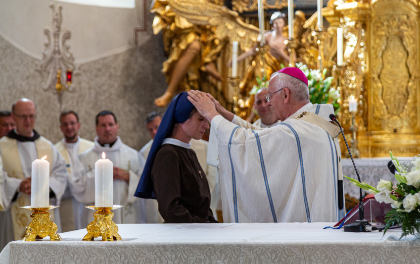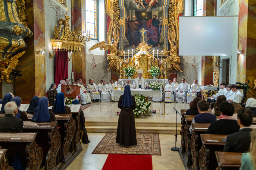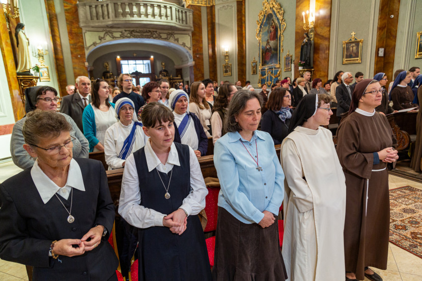 A mai ünnep ilyen hegymenet és egyúttal szemben úszás az árral. Mindannyiunk számára különleges üzenete van ennek a mai fogadalomtételnek. Mit üzen? Azt üzeni, hogy a hit nem magánügy! Krisztina nővér ezt nem a szerzetesház kicsi kápolnájában pár ember előtt teszi, hanem itt az Egyház színe előtt. A püspök, a szerzetesnővérek, szerzetestestvérek, a papság és a hívek jelenlétében teszi le a fogadalmát.