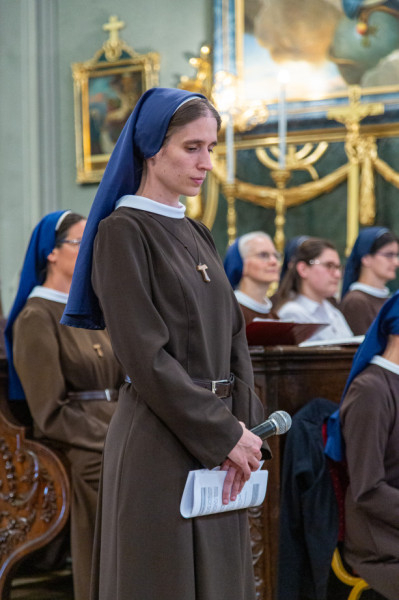 A homília után a szerzetesi élet lényegére vonatkozó kérdések következtek, majd a Mindenszentek litániája alatt a fogadalmas kitárt karral leborult a földre az Istennek való teljes önátadás jeleként.