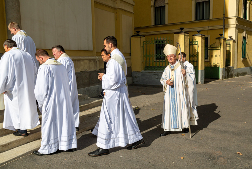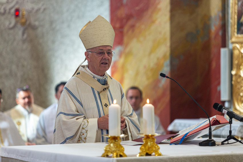 A szentleckében Szent Pál apostolnál azt olvashatjuk: „Legyetek tüzes lelkűek, az Úrnak szolgáltok.” (Róm 12,11) Mit jelent tüzes lelkűnek lenni? Azt jelenti, hogy lelkes vagyok, örömmel adom oda magamat – fogalmazott a főpásztor. Felhívta a figyelmet a nemrégiben megjelent népszámlálási adatokra, melyeknél sokan voltak, akik a vallásuk kapcsán nem kívántak nyilatkozni. Vajon miért nem válaszoltak? Mert feltehetően azt gondolták, hogy nem tartozik az senkire, hogy én hiszek, vagy nem hiszek. De hát ez nem így működik. Mert ha nem vallom meg a hitemet a közösség előtt, akkor az azt jelenti, hogy az nagyon gyenge, nagyon pislákoló. Akkor már szó sem lehet tüzeslelkűségről. Ezért olyan fontos, hogy belássuk az eszünkkel, a szívünkkel meg az akaratunkkal is, hogy a hitünk nem magánügy. Ha megvalljuk a hitünket, tanúságot teszünk arról, hogy Istenhez tartozunk.